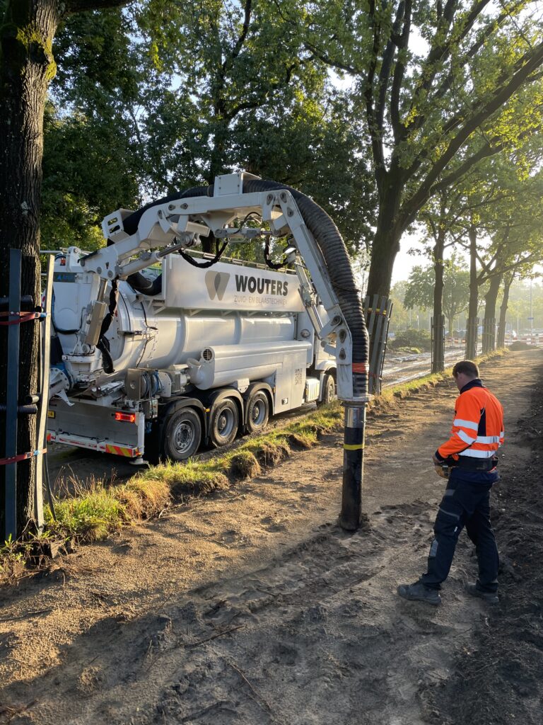 Het wegzuigen van grond rond boomwortels is een techniek die steeds vaker wordt toegepast om bomen te beschermen bij bouwwerkzaamheden. In plaats van de grond rond de wortels weg te graven, wordt de aarde vacuüm gezogen, zodat de wortels intact blijven. Deze methode voorkomt schade aan de wortels, die essentieel zijn voor de gezondheid en stabiliteit van de boom. Het weggraven van grond kan de wortels ernstig beschadigen, wat kan leiden tot verzwakking of zelfs de dood van de boom. Het wegzuigen is een minder ingrijpende en effectievere manier om bomen te beschermen tijdens bouwprojecten of grondverzet.