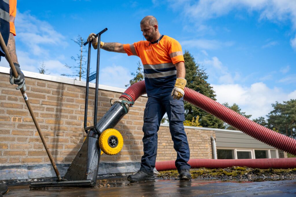 Met de zuig- en blaastechniek wordt het werk niet alleen efficiënter en veiliger, maar ook met precisie uitgevoerd, wat leidt tot een duurzame oplossing voor elk dakproject.