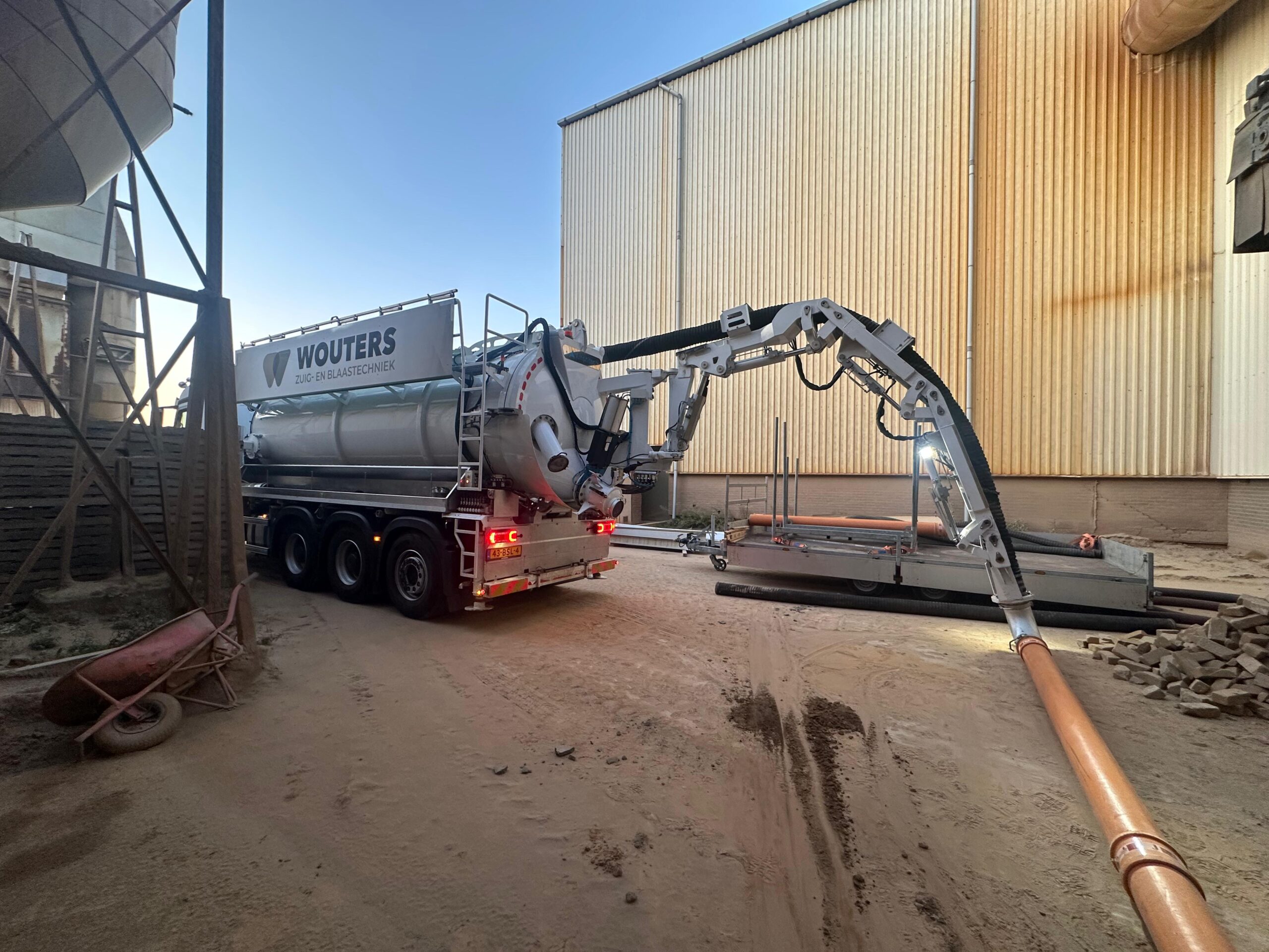 Opstellen van de vacuüm vrachtwagen inclusief buizen/slangen